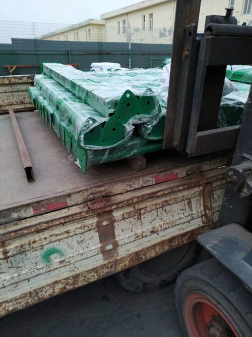 客戶定做的綠色桃形柱護欄網價格裝車發貨