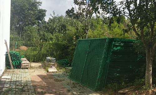這批鋼板網護欄網價格是南京淳化的一個老客戶采購的,客戶在淳化修建了一個度假農莊,這批鋼板網護欄網浸塑用來當做農莊的外圍墻來用的,由于客戶計劃長期使用,所以就要求我們提供的產品能有很好的防腐能力和使用壽命,這批鋼板網護欄網的立柱和邊框全部使用熱鍍鋅管來焊接制作,這批鋼板網護欄網的立柱采用混凝土預埋固定,為了提高鋼板網護欄網的牢固度,我們還給鋼板網護欄網的每一根立柱配了斜撐。下面的照片就是這批鋼板網護欄網送到客戶農莊卸貨時拍攝的。http://www.jhygyb.cn/product/zxhlw-179.html
